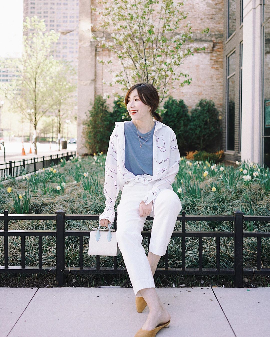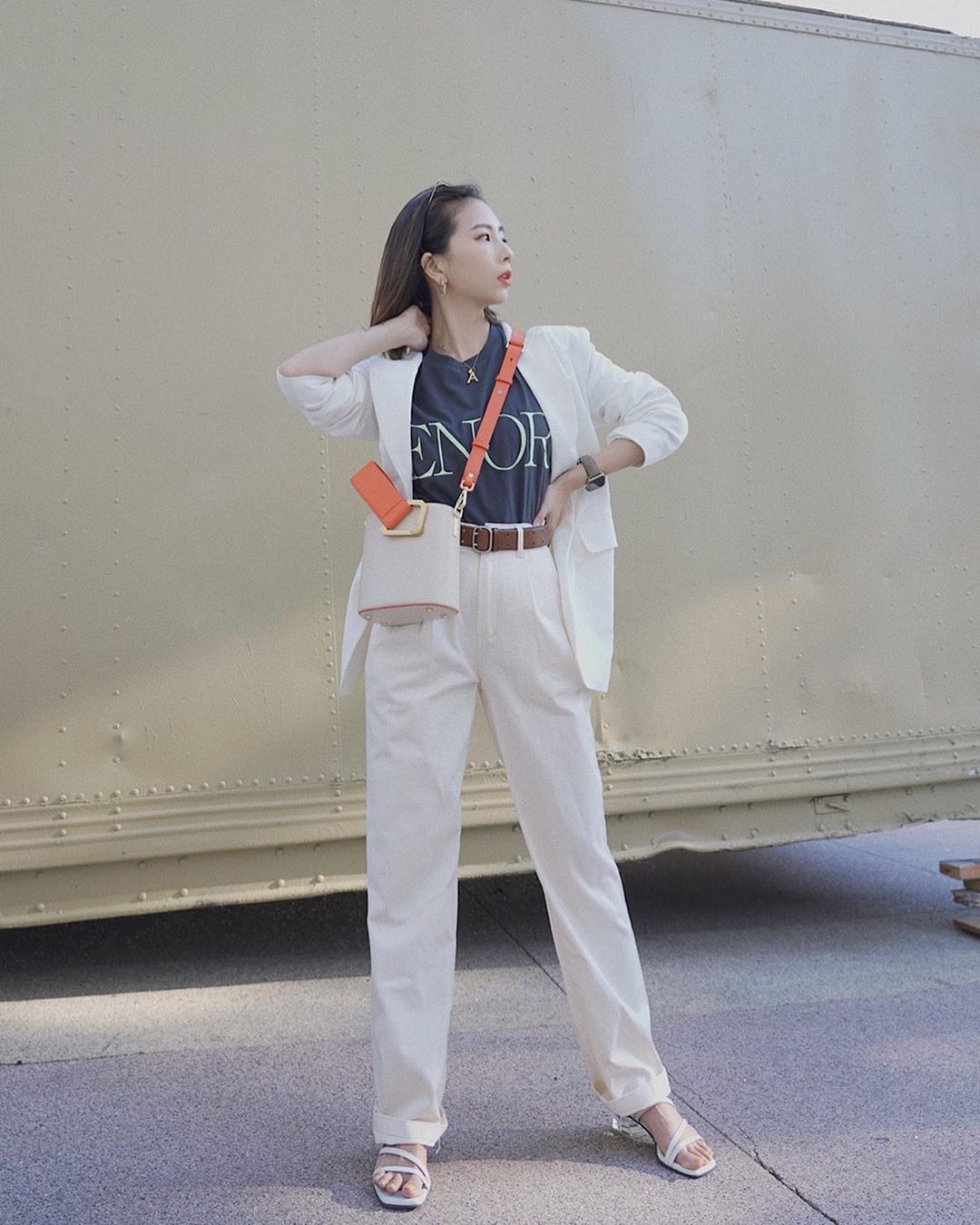 Thú thực, quần trắng không tiêu tốn của chị em quá nhiều chất xám. Bạn mix ngẫu hứng với những mẫu áo có sẵn trong tủ, kiểu gì cũng hoàn thiện được một set trang phục ưng mắt. Tuy nhiên, để cho thấy tối đa vẻ sành điệu và sang chảnh, ý tưởng diện quần trắng tuyệt vời nhất vẫn là mix với những items mang gam màu nhã nhặn, và bạn sẽ thấy vẻ ngoài của mình xịn sò như đang được phủ toàn hàng hiệu.