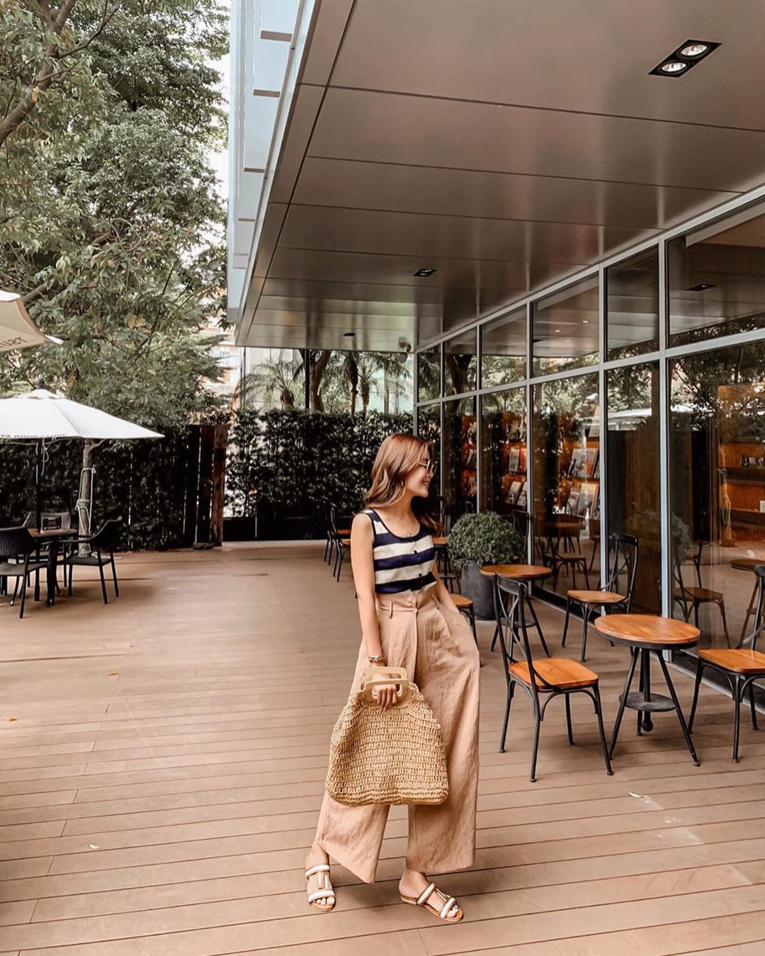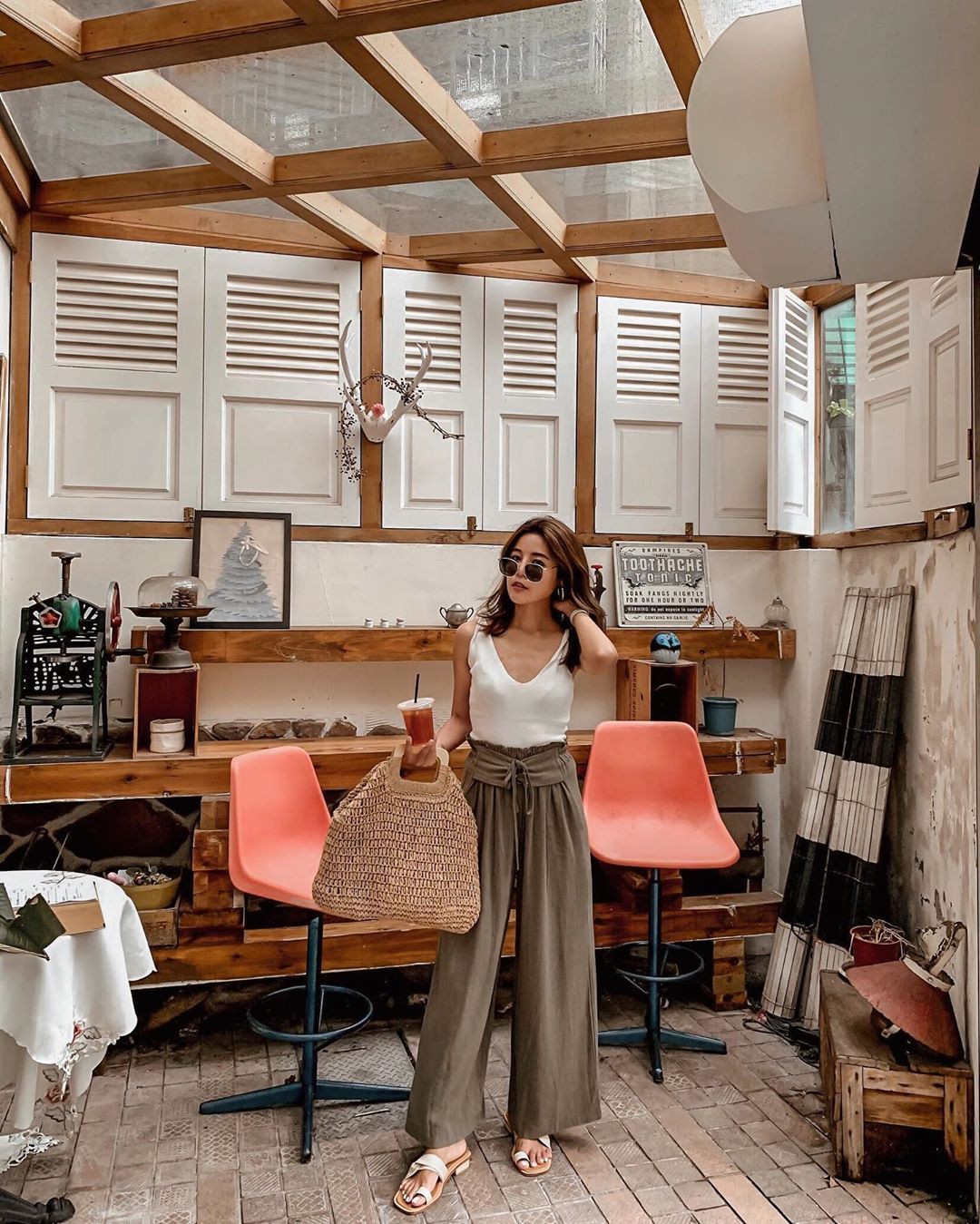Xét về độ thoải mái và mát mẻ, bộ đôi áo hai dây + quần ống rộng chắc chắn sẽ tiếm ngôi đầu bảng giữa vô vàn những công thức diện đồ mà bạn có thể áp dụng hè này. Sự kết hợp giữa áo hai dây và quần ống rộng cũng "ngọt" hết sức, do cả hai đều mang đậm nét tự do, phóng khoáng. Và bật mí thêm, chỉ cần bạn sơ vin chỉn chu, set đồ sẽ toát lên vẻ thanh lịch và sành điệu hơn hẳn.