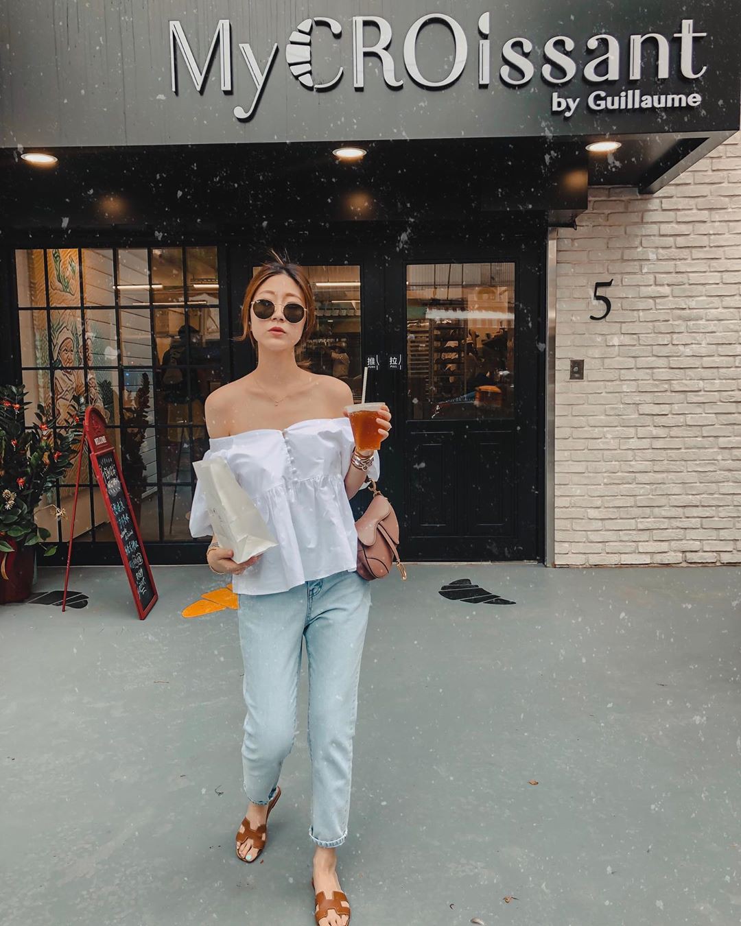 4. Áo sơ mi/blouse trắng + quần jeans