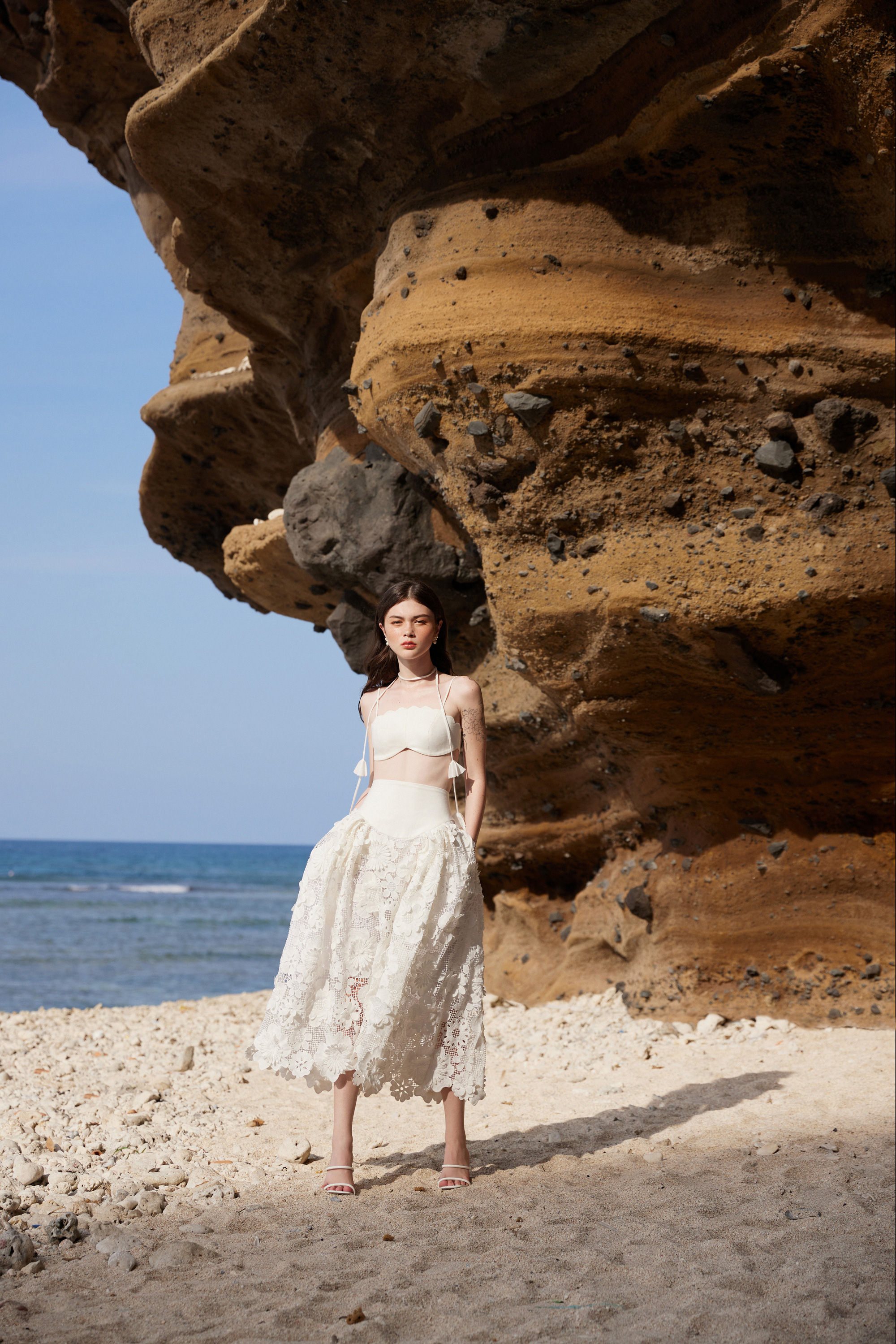 Chia sẻ thêm về thiết kế này, NTK trẻ Thanh Dương cho hay, hình ảnh đăng tải thuộc campaign mới nhất trong BST của anh. Hình ảnh được chụp tại một khu nghỉ dưỡng ở Hội An miêu tả người mẫu nước ngoài trong thiết kế áo tay bồng cổ lá phối cùng chiếc váy mini thêu hoa 3D nổi bật, tay cầm chiếc túi hình sóng biển được tạo ra bởi nhà thiết kế Nguyễn Thanh Dương.