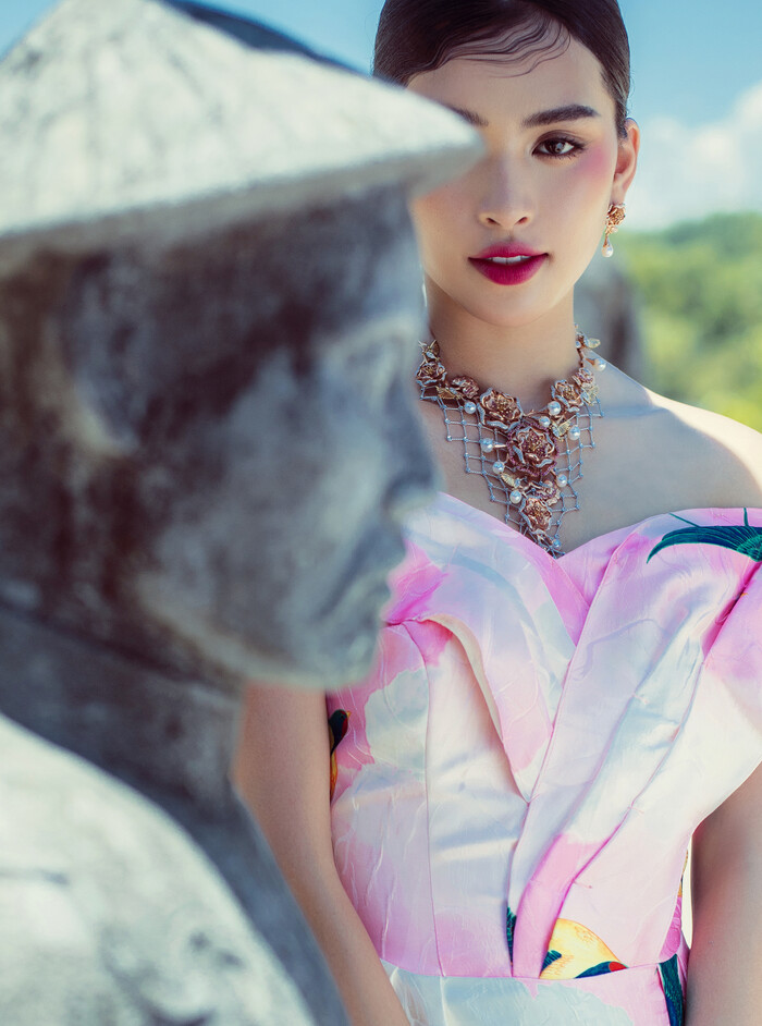 Nhan sắc xinh đẹp của Trần Tiểu Vy càng thêm rực rỡ trong những mẫu thiết kế ấn tượng.