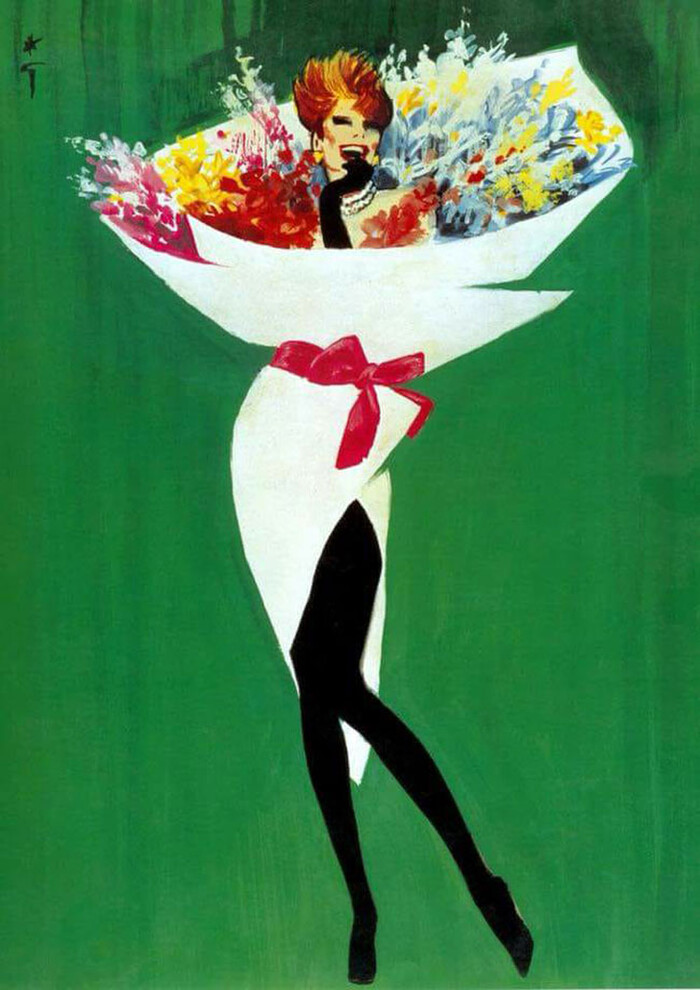Trong bức vẽ là chân dung một người phụ nữ rạng ngời trong một bộ váy được thiết kế giống như một bó hoa và cô cũng chính là một trong những bông hoa khoe sắc.