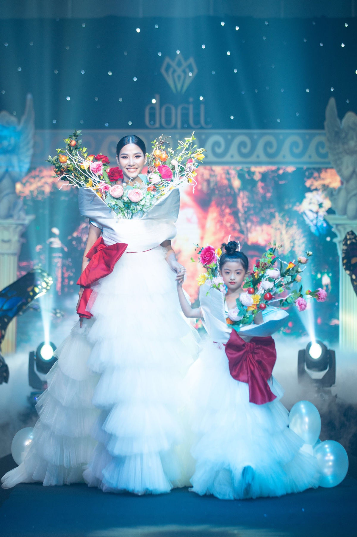 Trong show, Hoàng Thùy đảm nhận vị trí vedette kết màn khi trình diễn mẫu váy trắng xếp nhiều tầng, phần thân trên được tạo hình bó hoa với những bông hoa rực rỡ bao quanh khuôn mặt của Hoàng Thùy. Chân dài khiến người hâm mộ phải trầm trồ khen ngợi khi xuất hiện trên sàn diễn với những bước catwalk vô cùng điêu luyện.