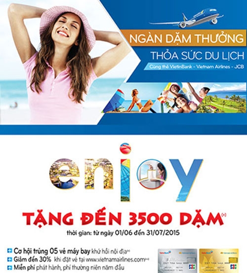 Đặc biệt với khách hàng sở hữu thẻ VietinBank – Vietnam Airlines - JCB, khi khách hàng chi tiêu từ 2 triệu đồng trở lên trong chương trình khuyến mại sẽ được tặng thêm 1.000 dặm cho chủ thẻ hạng Vàng và 3.000 dặm cho chủ thẻ hạng Bạch Kim và có cơ hội nhận được vé máy bay khứ hồi nội địa trị giá lên đến 6 triệu đồng.