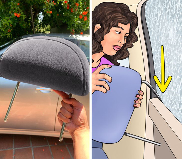 Đây là phần có thể tách rời nơi đầu ghế ôtô, giúp người lái và hành khách có trải nghiệm đi xe dễ chịu hơn. Tuy nhiên, chiếc đầu này còn một công dụng khác nữa. Khi tháo rời ra, những thanh sắt ấy đủ sắc và cứng để giúp bạn phá vỡ cửa kính xe trong trường hợp khẩn cấp. Chỉ cần nhét vào khe giữa kính và cửa rồi bẩy mạnh lên, bạn đã có thể phá vỡ kính một cách dễ dàng rồi thoát ra khỏi xe.
