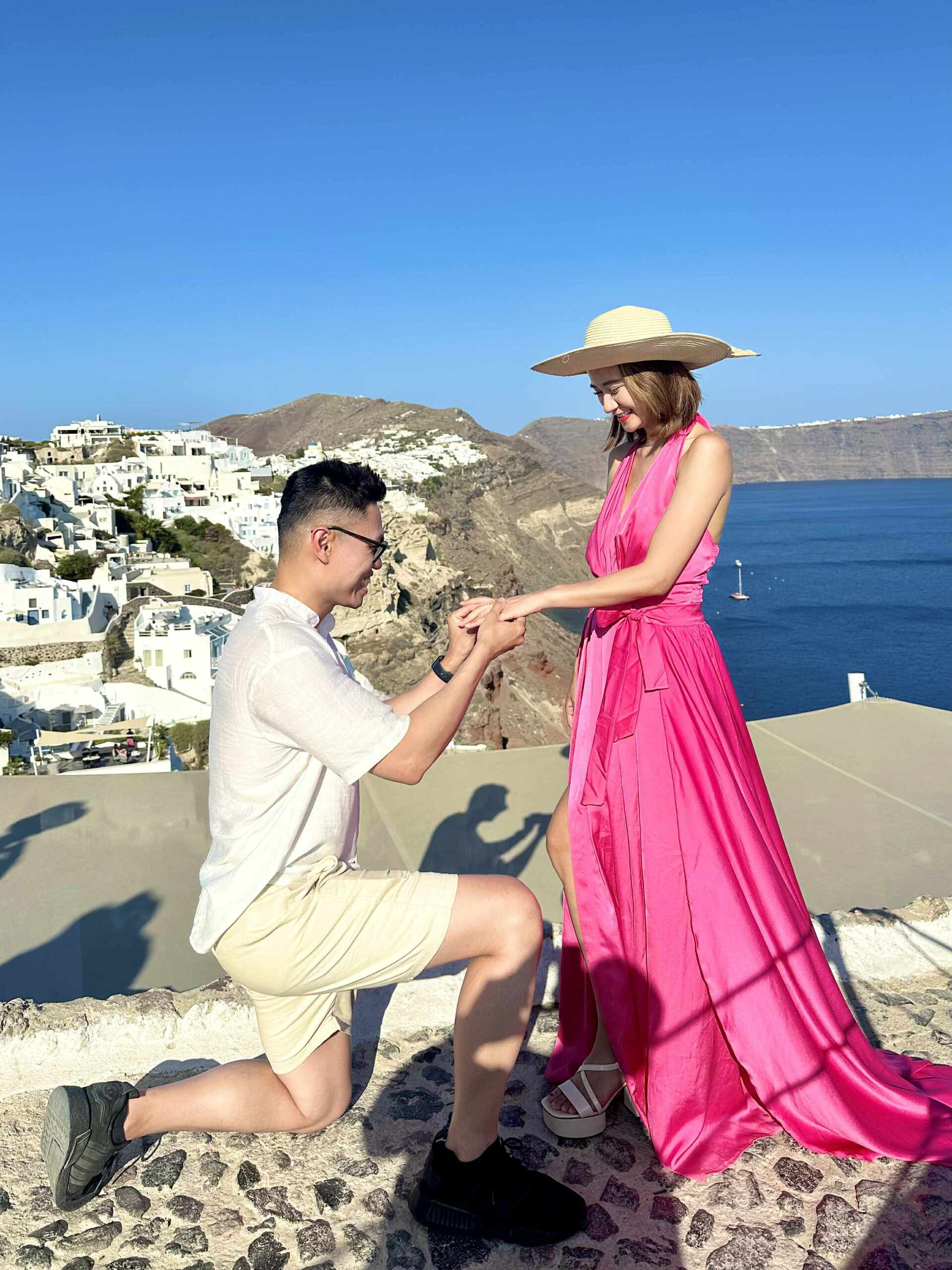 Đầu tháng 6, cặp đôi đi du thuyền từ Athens - Thủ đô của Hy Lạp tới các hòn đảo xinh đẹp như Mykonos, Ephesus, Rhodes và Santorini. Đây là chuyến đi kỷ niệm 9 năm kể từ khi anh Việt cầu hôn chị Hạnh tại Santorini.