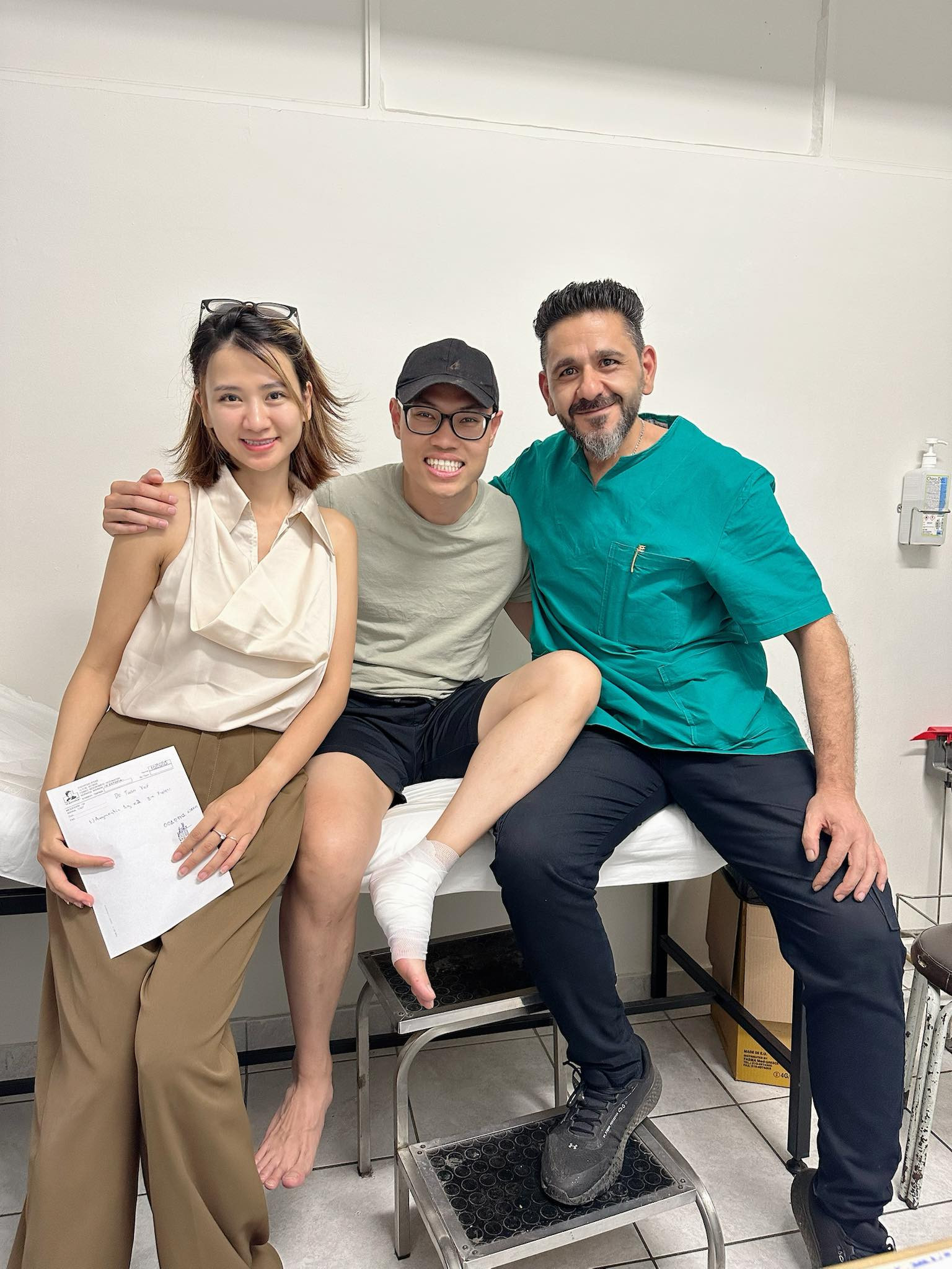 Tới sân bay, chị vội vã đi trả xe, làm việc với đơn vị bảo hiểm và tìm nhân viên y tế khám cho chồng. Lúc này đã muộn, trung tâm y tế ở sân bay không xử lý được vết thương của anh Việt, khuyên cặp đôi nên về khách sạn nghỉ và tới viện vào hôm sau.