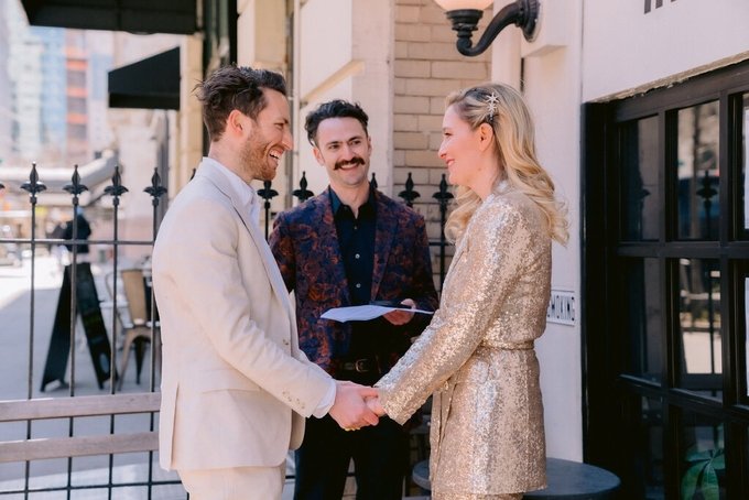 Mặc dù vậy, người đàn ông này vẫn kiên quyết theo đuổi. Họ yêu nhau nhiều năm và đến ngày 19/3, ngay bên ngoài quán cà phê nơi họ gặp nhau lần đầu, cả hai tổ chức hôn lễ với sự góp mặt của một nhóm bạn bè, riêng gia đình thì dự qua Zoom. Trước đó, cặp đôi đã đính hôn và dự định đám cưới với 170 người vào tháng 10/2020 nhưng phải hoãn lại vì dịch.