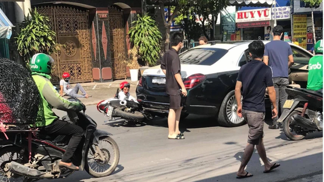 Cụ thể, khi chiếc siêu xe Maybach - Mercedes đang dừng đèn đỏ thì 2 thanh niên đi xe máy không làm chủ được tốc độ đã đâm vào đuôi bên trái của chiếc siêu xe có giá trị lên đến cả chục tỷ VNĐ.