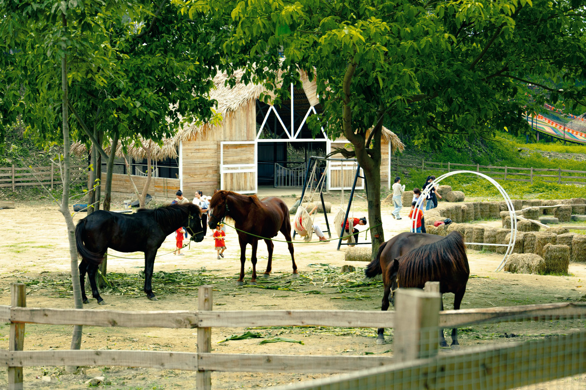 Tới đây, du khách có thể tham gia các hoạt động ngoài trời thú vị như trượt phao và trượt cỏ, ngắm động vật như ngựa, thỏ hay chèo thuyền trên sông…