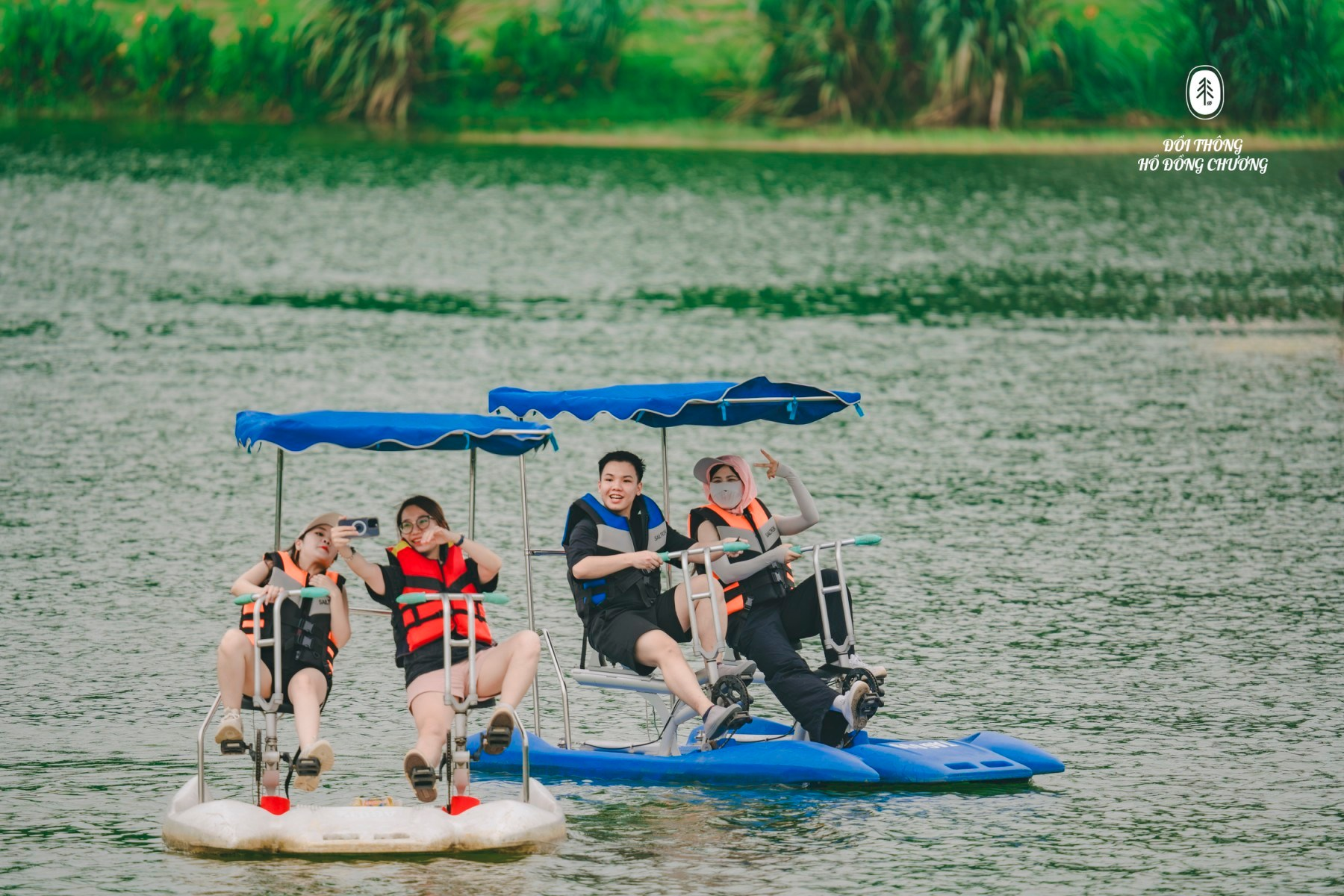 Tới đồi thông hồ Đồng Chương, du khách có thể trải nghiệm Green Pine Camp - khu cắm trại nhộn nhịp với nhiều hoạt động ngoài trời thú vị như: Zipline vượt rừng thông; Đạp xe xuyên đồi; Đua xe go kart; Chèo kayak/xe đạp nước trên hồ; Đua xe ATV qua đường rừng; Bắn cung…