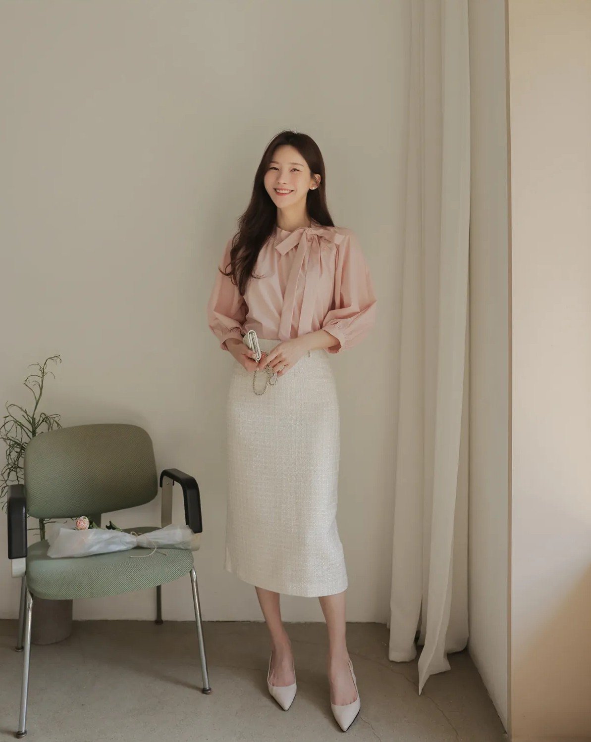 Khi kết hợp áo blouse với chân váy, bạn có thể tạo nên một bộ trang phục vừa thanh lịch lại vừa nổi bật. Chân váy midi hoặc chân váy bút chì là những lựa chọn lý tưởng khi phối với áo blouse. Set đồ này không chỉ phù hợp cho môi trường công sở mà còn rất dễ dàng để bạn diện trong những buổi gặp gỡ, hẹn hò.