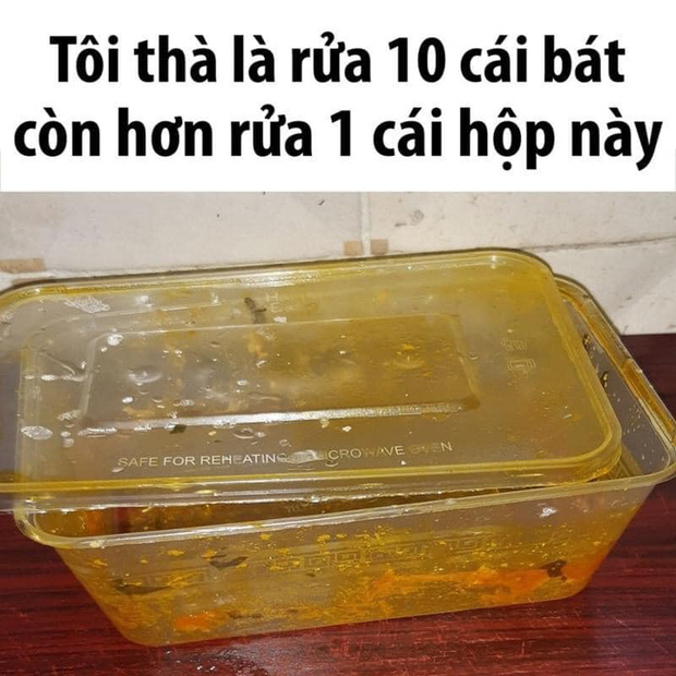 Sở dĩ đây là ác mộng của hội rửa bát là bởi một khi lớp nhựa đã dính mỡ, sốt màu, mùi thịt… các loại thì rất khó để rửa sạch, rửa xong dễ vẫn còn nhớt và ám mùi. Thông thường để làm sạch bề mặt hộp nhựa phải có mẹo rửa, hoặc rửa hai lần trở lên. Vậy nên mới nói: “Thà rửa 10 cái bát còn hơn phải động vào”!