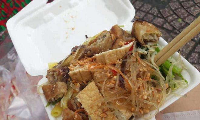 Nhưng trưa nay, khi bước khỏi cổng trường Nhân Văn trong sự ngơ ngác... mình ăn gì đây thì tôi thấy nép một bên góc phải phía cổng, có chị bán miến/ nui/ mì xào.