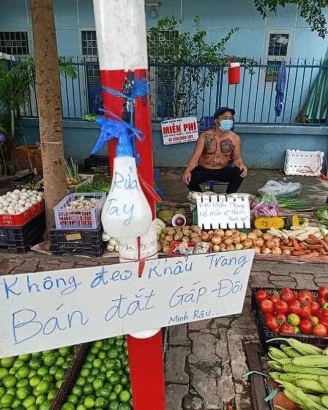 Anh bán rau xăm trổ Minh Râu (Đồng Nai) từng rất nổi tiếng trên mạng xã hội với loạt "content" bán rau cực dễ thương. Mới đây, màn đáp trả cực chất trước tin nhắn bị chửi "ngu" vì bán rau rẻ: "Kiếm tiền cả đời chứ đâu nhất thiết phải ngay lúc này" cũng gây ấn tượng mạnh đối với cư dân mạng. Trong những ngày dịch bệnh phức tạp, khi có những tiểu thương lợi dụng để nâng giá lên cao, anh Minh Râu vẫn giữ bình ổn giá và tặng rau cho người khó khăn.