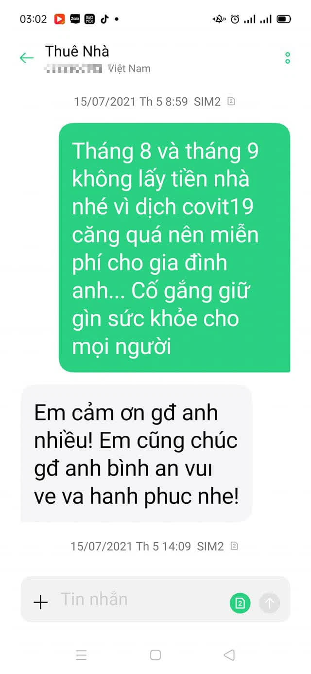 Không chỉ bán rau, anh Minh Râu cũng kinh doanh phòng trọ nữa. Nhưng với phương châm sống: "Ở lâu ở dài, mình quý người ta lúc khốn khó rồi người ta sẽ giúp mình lúc khó khăn. Cho đi một xíu biết đâu sau này nhận lại quá trời thì sao?", anh đã hào phóng tặng người thuê hẳn 2 tháng tiền nhà tháng 8 và tháng 9. Anh cũng không quên động viên: "Cố gắng giữ gìn sức khỏe cho mọi người".