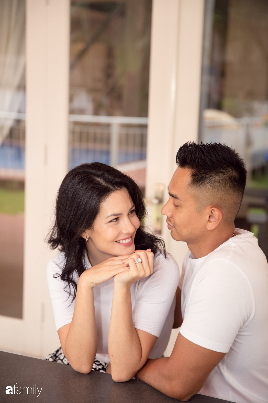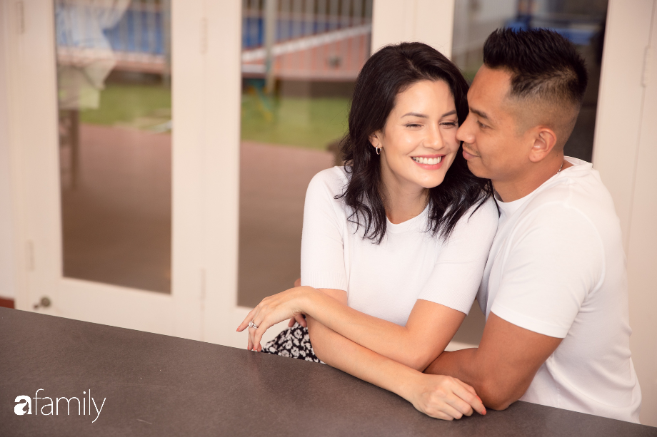 10 năm trước khi tôi tham gia cuộc thi Miss Việt - Úc, anh là người đã hỗ trợ tổ chức chương trình đó nên đã tạo điều kiện rất lớn để hai chúng tôi thường xuyên gặp nhau. Và ngay trong những lần gặp đầu tiên tôi cảm nhận mình đã có tình cảm rất đặc biệt với anh ấy mà không dám nói ra vì sợ ảnh hưởng. Mãi đến khi cuộc thi kết thúc, tôi với anh mới có thể chủ động hẹn hò và chỉ 3 năm sau đó anh đã cầu hôn tôi.