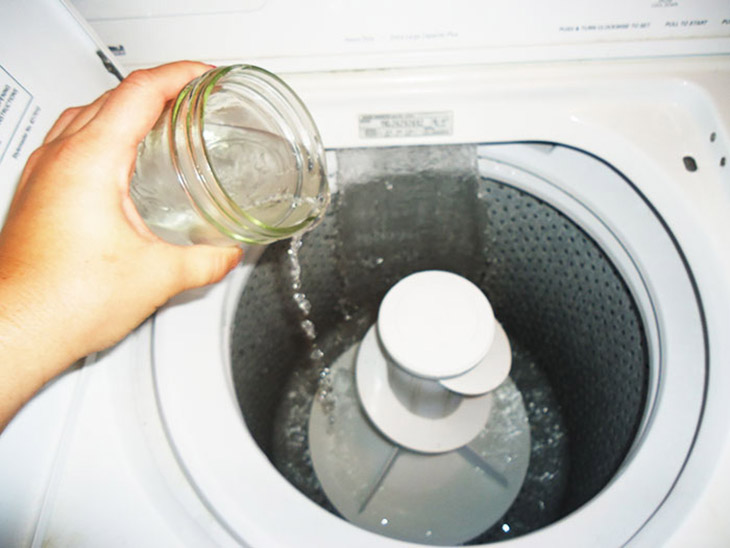 Đầu tiên, bạn trộn bột baking soda và nước với nhau, đây chính là chất tẩy rửa chủ đạo để làm sạch máy giặt. Cho hỗn hợp bột baking soda vừa trộn vào trong khay đựng chất giặt tẩy của máy giặt, và đổ giấm ăn vào lồng giặt. Nếu máy giặt không có khay đựng chất giặt tẩy riêng, có thể đổ trực tiếp hỗn hợp bột baking soda và giấm ăn vào lồng giặt.