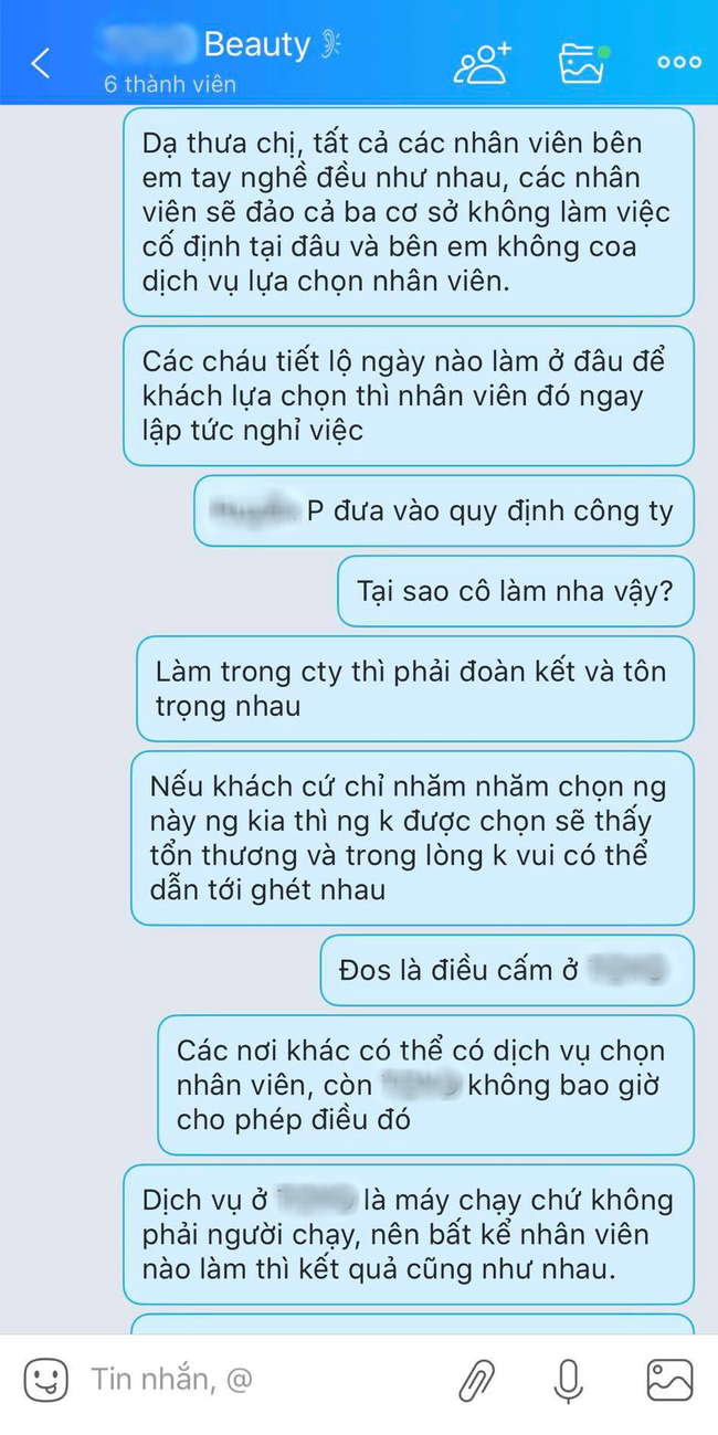 14/07/2019 16:00Bà chủ tiệm spa gây ngỡ ngàng vì thông báo: 'Đuổi ngay nhân viên nào mà khách muốn chọn và chỉ định'