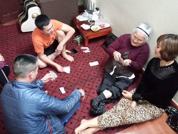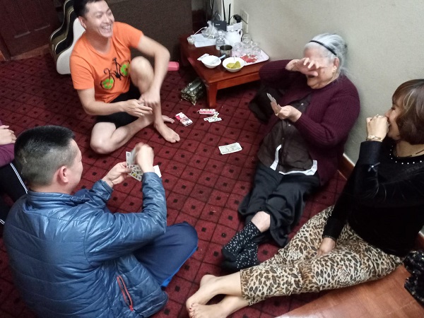 Hình ảnh đính kèm là một cụ bà tóc đã bạc trắng, ngồi chơi bài với con cháu, nét mặt cụ trông rất tươi vui, rạng rỡ.