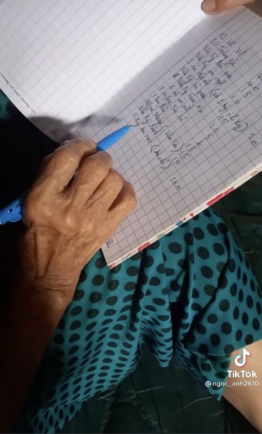 Người bà trong video clip đã liệt kê danh sách những thứ cần mua cho cô cháu đi chợ. Bên cạnh đó, ngoài số lượng thì bà dự tính luôn giá cả cụ thể cho từng món hàng. Theo đó, bà cũng hiểu tình hình giá cả mùa giãn cách có thể sẽ biến động nên mỗi món bà đều cho tăng giá vài nghìn đồng.