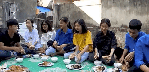 Dĩ nhiên, như mọi clip khác của bà Tân, không thể thiếu đó chính là "hạm đội các cháu của bà". Rất nhiều thanh niên cả nam lẫn nữ đã đến để thưởng thức "lợn quay khổng lồ" của bà Tân Vlog.