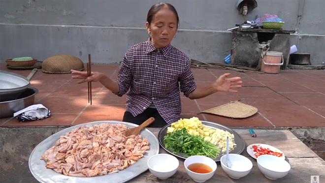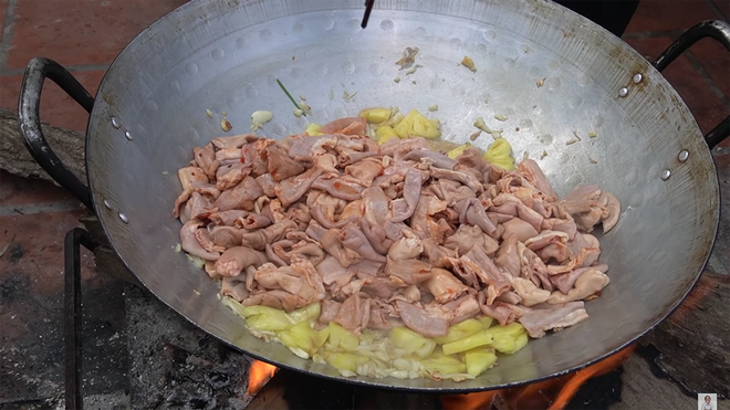 Dạo gần đây, có vẻ như tay nghề nấu nướng của bà Tân ngày càng tốt hơn nên các món nấu ra đều trông rất hấp dẫn. Cách bà làm lòng cũng vô cùng cẩn thận, rửa lại nhiều lần với muối và giấm để làm sạch.