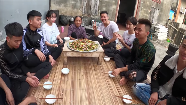 Món này ăn chung với cơm nóng mới ngon, nên bà Tân còn chuẩn bị một nồi cơm thật to. Bà và các cháu cùng nhau thưởng thức món ăn "siêu to khổng lồ" và tuyệt nhiên không có ai kêu ca gì về việc miếng lòng quá to. Có lẽ, lòng thái to lại ngon hơn chăng?