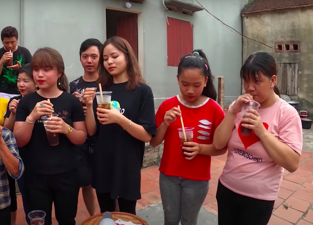 Ngược lại, trong đoàn khách vẫn có những đứa trẻ, thanh niên trai tráng uống một lèo trà bí đao rất sảng khoái, còn xin thêm và liên tục khen ngon.