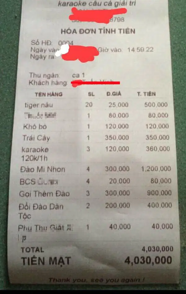 Một số chị vợ thấy có đào dân tộc, đào mi nhon và những “phụ kiện” cực kỳ tế nhị trong hóa đơn thanh toán từ 1 quán karaoke mà cảm thấy mất hết lòng tin vào đàn ông và không thể nghĩ trong sáng cho được khi biết chồng đi hát.
