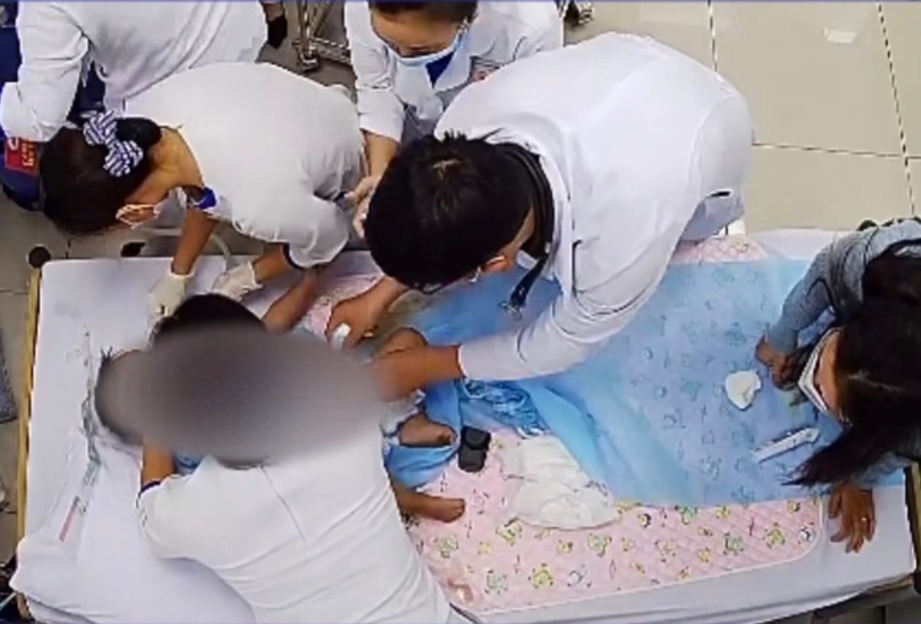 Trong clip, người cha bế con chạy từ ngoài đường vào, liên tục gào thét trong tuyệt vọng: “Bác sĩ ơi, xin hãy cứu con tôi…cứu con tôi”. Lập tức, các bác sĩ và điều dưỡng đang có mặt tại phòng tiêm chủng nhanh chóng đặt bé trai lên giường bệnh để xử trí.