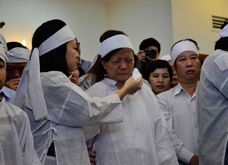Con gái ông Nguyễn Bá Thanh lau nước mắt cho mẹ trong giờ truy điệu sáng 16-2 |