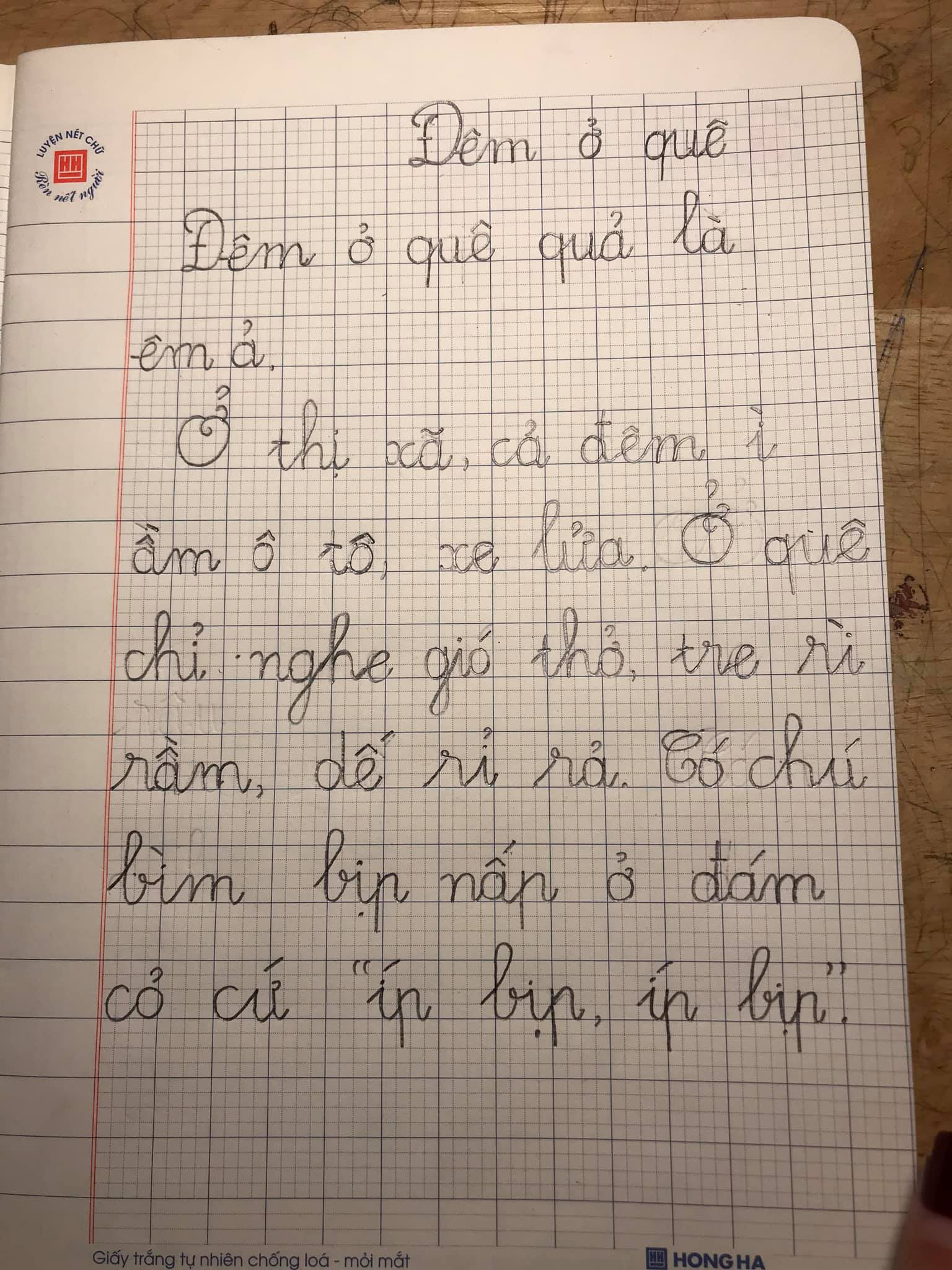 Có thể thấy, trẻ hoàn toàn không lạc đề mà tả vô cùng chân thực. Nhưng điều khiến mọi người ngạc nhiên nhất chính là khả năng dùng những từ ngữ miêu tả âm thanh vô cùng sống động như "rì rầm", "ì ầm", "rỉ rả", "íp bịp"... của trẻ. Đặc biệt, nhiều người còn nhận ra đứa trẻ này viết chữ vô cùng đẹp.