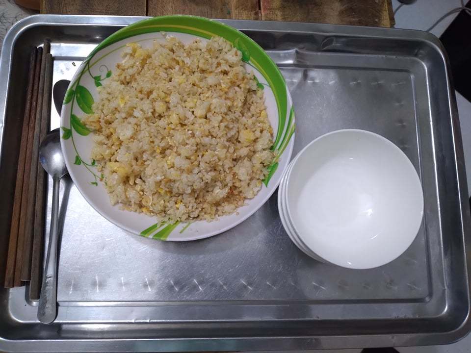 Để giản tiện chi phí, bữa sáng vợ chồng chị rang cơm với trứng hoặc úp mì tôm, cắm cơm nóng ăn với thức ăn còn thừa lại từ bữa trước.