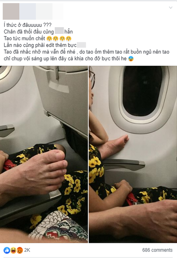 Cụ thể, một cô gái trẻ đã đăng tải dòng than thở khi bản thân trải qua chuyến bay chẳng mấy vui vẻ bởi đôi chân thiếu ý thức của một vị hành khách ngồi hàng ghế sau. Đính kèm là hình ảnh hai bàn chân nằm vô cùng chướng mắt ở hai bên thành ghế máy bay khiến nhiều người không khỏi choáng váng.