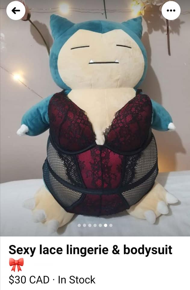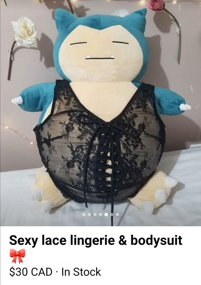 Mới đây, một cô nàng đã tận dụng luôn "cây nhà lá vườn" để làm mẫu cho mình đăng hình sản phẩm. Cụ thể, chủ shop này buôn bán đồ ngủ sexy cho nữ giới. Nhưng vì không thuê được người mẫu, cô đã dùng luôn chiếc gối ôm hình thú Kabigon để mặc thử sản phẩm.