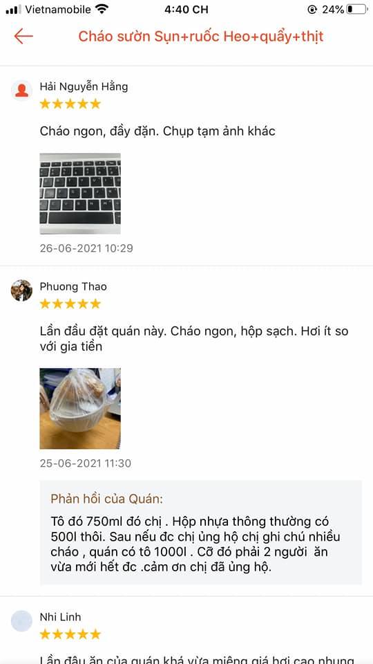 Đối với mỗi phản hồi tiêu cực, quán đều đối đáp thiếu thiện chí, không chào đón quay trở lại, thậm chí sẵn sàng cãi nhau tay đôi với khách hàng. Dù có được đánh giá 5 sao nhưng lỡ miệng chê "cháo ít", khách vẫn phải nhận những lời móc mỉa của quán "Tô đó 750ml đó chị. Sau nếu được chị ủng hộ, chị ghi chú nhiều cháo, quán có tô 1.000l".