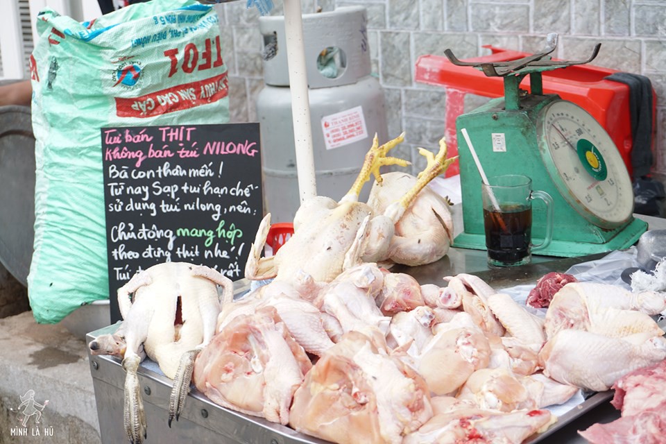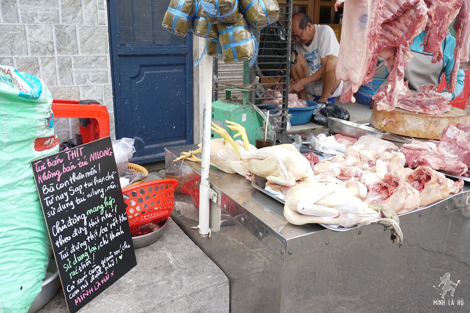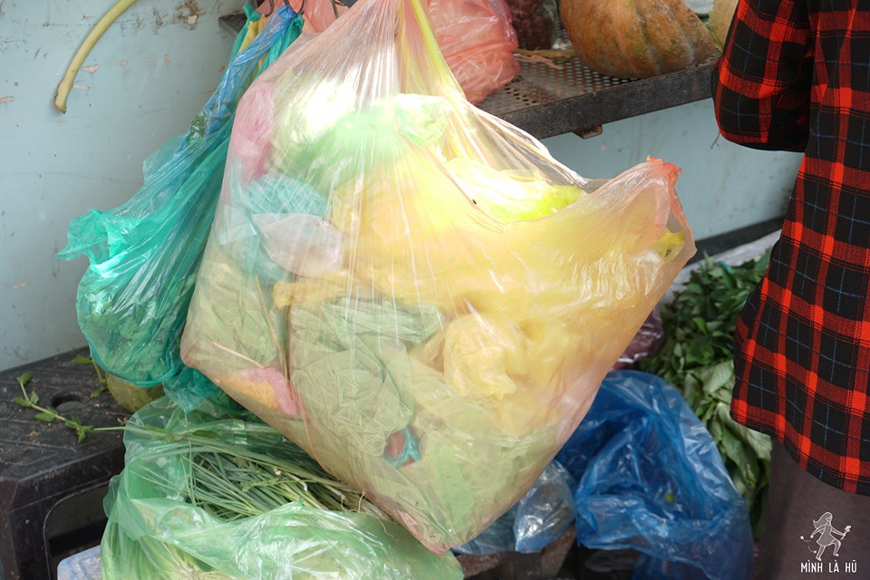 Nói thực đây là cách các cô/chị và mình tiếp cận đến nhiều khách hơn nữa, chứ trước đó cô Hương và cô bán rau lần trước mình kể đã thực hành chuyện này. Cô còn khoe với mình cô có một rổ nilon thu từ khách hàng, hạn chế mua thêm túi mới.