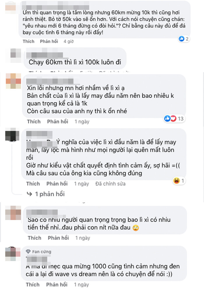 Trong khi đó, có nhiều người bình luận hài hước quay câu chuyện: “Anh đi Mercedes lì xì 1.000 đồng thì tình cảm nhưng đen cái anh lại đi Wave, Dream nên có chuyện để nói”...