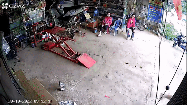 Theo đoạn clip ghi lại, khách hàng đưa xe máy đến cửa hàng nhờ anh thợ sửa khu vực bánh sau. Tiếp nhận xe từ khách hàng, anh thợ đưa chiếc xe máy lên bàn nâng để dễ dàng tháo lắp.