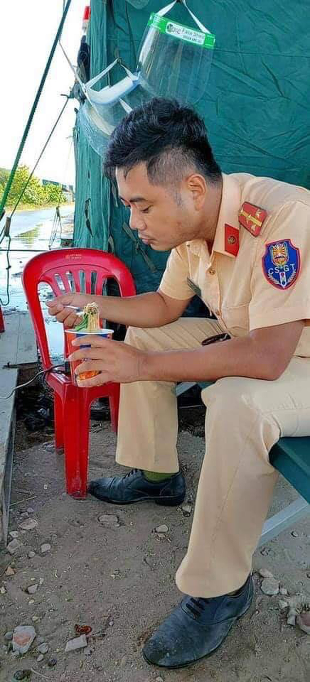 Hình ảnh họ ngồi trong chốt, ăn vội cốc mì khiến người xem bỗng thấy rưng rưng.