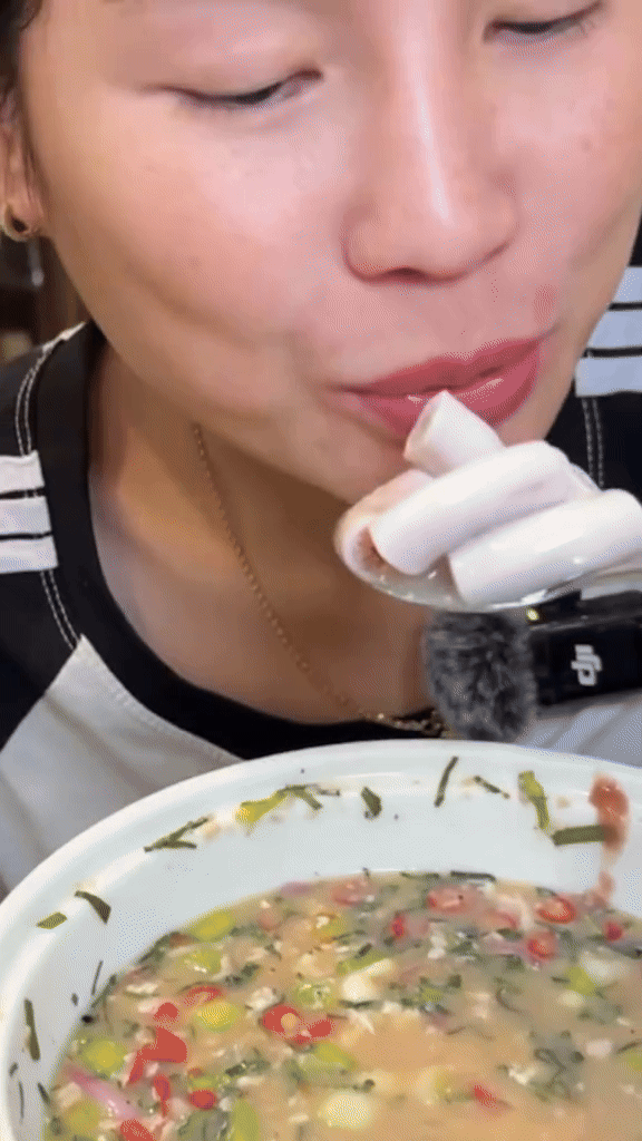 Cô quay clip đăng tải lên mạng xã hội chia sẻ về cảm nhận và trải nghiệm khi thưởng thức loại đồ ăn này. Ngoài lòng se điếu thì bữa ăn của cô còn có thêm các loại nội tạng lợn khác như lòng, dồi,... Ở những clip mukbang sau đó, người phụ nữ này cũng nhiều lần lên clip ăn lòng, trong đó có lòng se điếu.