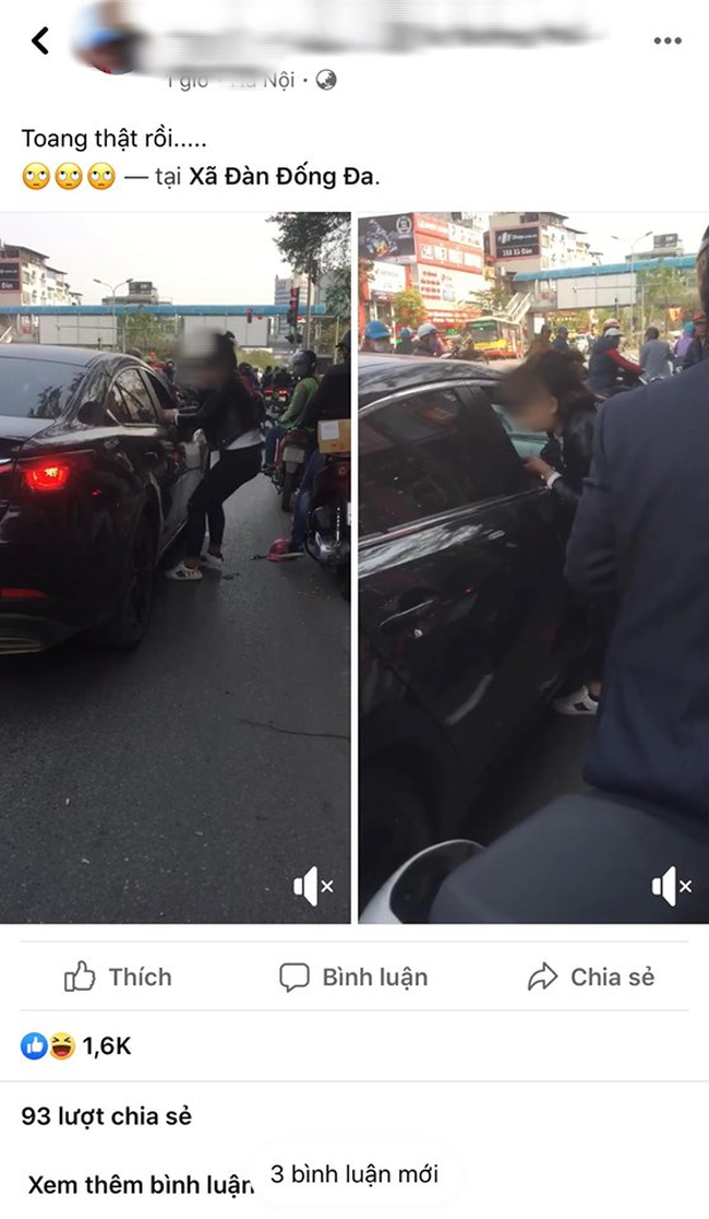 Theo nội dung đoạn clip chia sẻ, người vợ liên tục quát lớn, túm vào áo cô nhân tình trong xe ô tô khi phát hiện chồng đi chơi cùng cô bồ kèm lời chú thích của người đăng tải clip: "Toang thật rồi...". Theo chia sẻ, sự việc được ghi lại mới đây tại Xã Đàn, Đống Đa, Hà Nội.