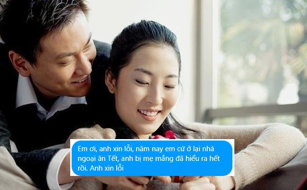 Anh bảo rằng gọi điện về nhà thì bố mẹ chồng mắng té tát và bảo nên để em ở dưới ngoại ăn Tết, đi đường xa bố mẹ xót dâu, xót cháu lắm. Chồng em xin lỗi rối rít bảo là suy nghĩ không kĩ lại có uống với bạn bè nên mới ăn nói như thế.