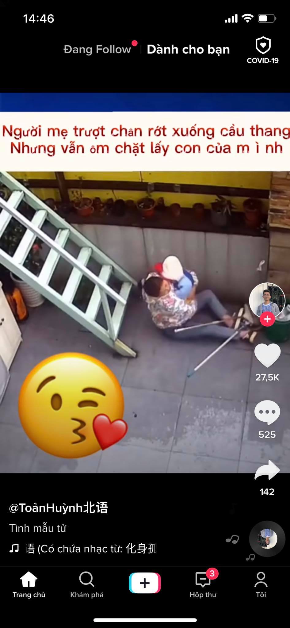 | Clip người mẹ bị ngã rất đau nhưng vẫn chỉ quan tâm đến con. Clip: Tài khoản Tiktok @Toản Huỳnh |