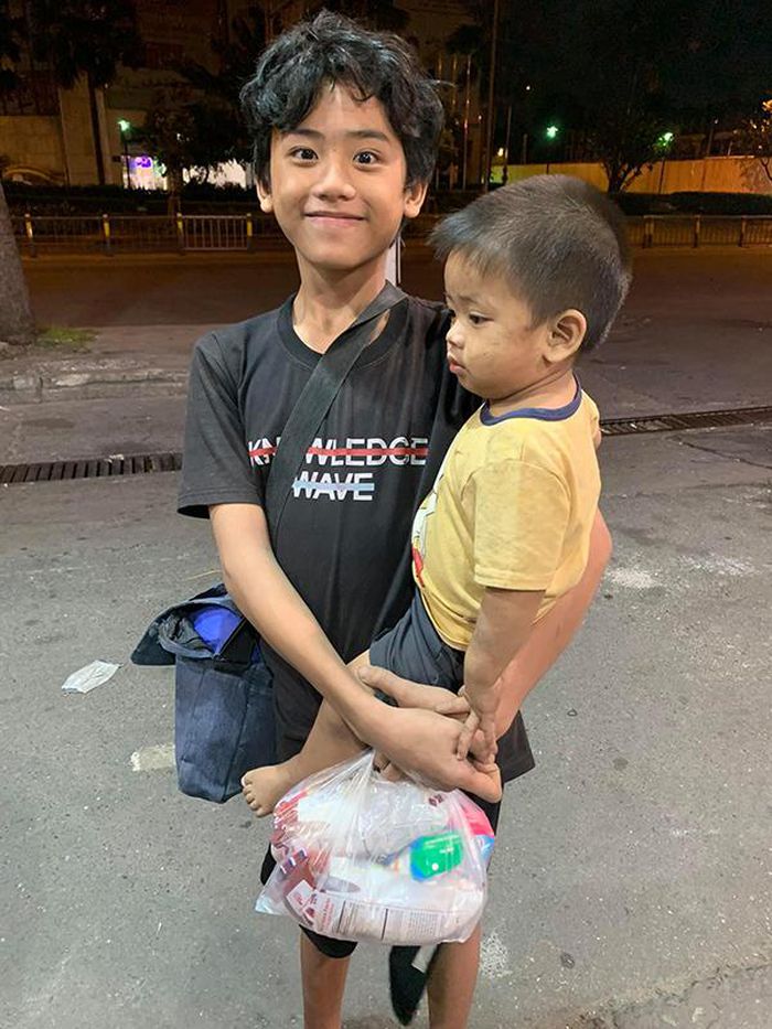 Mỗi ngày cứ khoảng 5,6h chiều, Cường sẽ bế theo em trai là Trần Thụ Minh (SN 2019), bắt xe bus từ chợ Bà Lát (huyện Bình Chánh) lên đến ngã tư trên đường Lê Đại Hành, quận 11 để xin ăn.