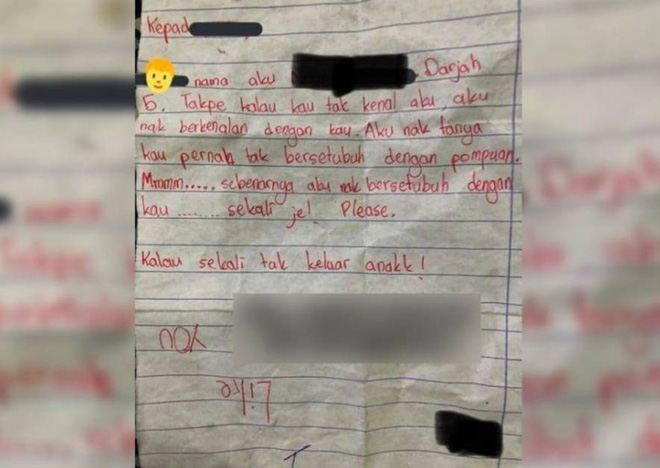 Thậm chí, cô bé còn trấn an crush rằng sau khi quan hệ sẽ không có một em bé nào được sinh ra cả. Được biết, mẹ của bé trai 12 tuổi đã tìm thấy lá thư trong cặp sách của con mình và quyết định đem lá thư đến văn phòng phúc lợi ở Kota Setar, bang Kedah, nhằm tìm kiếm sự giúp đỡ.