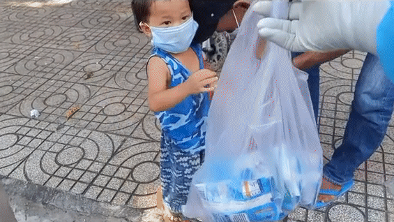 Trong hành trình phát cơm từ thiện của nhóm, có thể thấy họ hỗ trợ nhiều người nghèo, người vô gia cư, không phân biệt trẻ, già, thấy ai khó là tặng. Nhưng em bé 2 tuổi này được chú ý nhiều vì sự hồn nhiên của em.