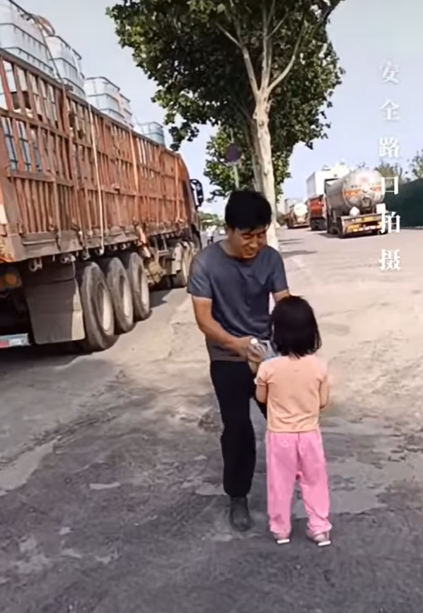 Cụ thể, đoạn clip ghi lại hình ảnh một bé gái với túi đồ ăn đang đứng ở ven đường, thấp thỏm, ngó nghiêng chờ ô tô đi qua. Theo lời kể của chủ nhân đoạn clip và cũng là mẹ của bé gái, lúc này cô bé đang đứng chờ bố lái xe đi qua. Người bố vốn là tài xế lái xe tải đường dài, rất ít khi được về nhà. Lần này biết tin anh tiện đường ghé ngang qua nhà một chút nên hai mẹ con đã vội vã chuẩn bị ít đồ ăn và dưa hấu mát để anh ăn dọc đường cho đỡ mệt.