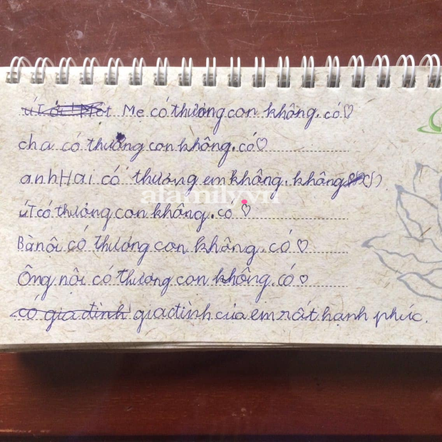 Trong phần nhật ký, khi viết ra cảm nhận về tình thương yêu của mọi người trong gia đình với mình, từ mẹ, cha, út đến bà nội, ông nội đều có câu trả lời là: CÓ (thương). Tuy nhiên, chỉ riêng anh hai thì câu trả lời lại là KHÔNG. Vậy nên, ngay sau phần kết thúc câu, thay vì biểu tượng là một trái tim như những câu khác thì anh hai được em gái tặng ngay một… trái tim vỡ. Cô bé tinh tế lắm chứ không đùa được đâu.